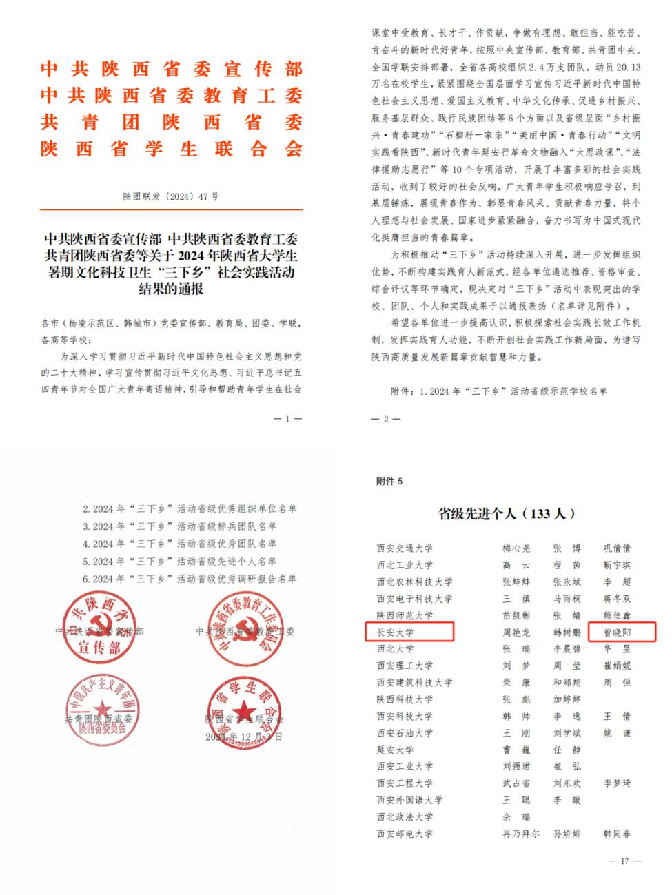 喜讯|成人网 团委书记曾晓阳获评2024年陕西省暑期“三下乡”社会实践活动先进个人