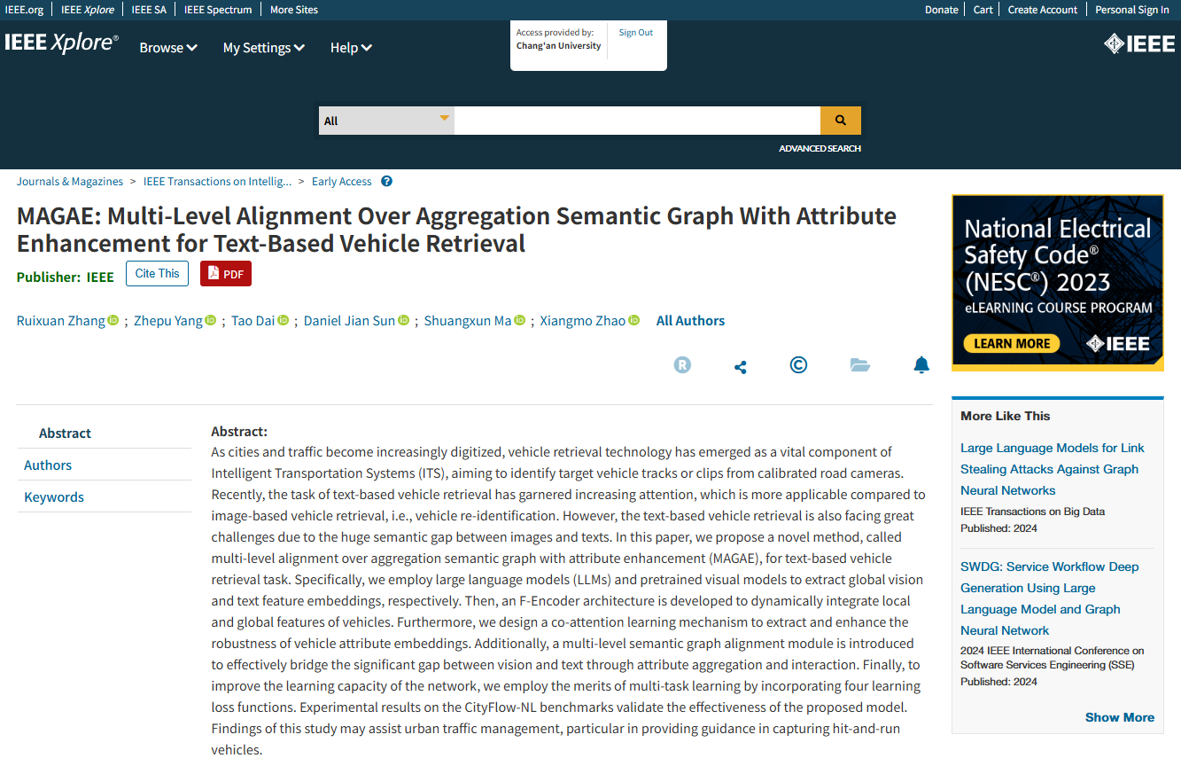 我校本科生以第一作者在智能交通领域顶级期刊《IEEE T-ITS》上发表研究论文