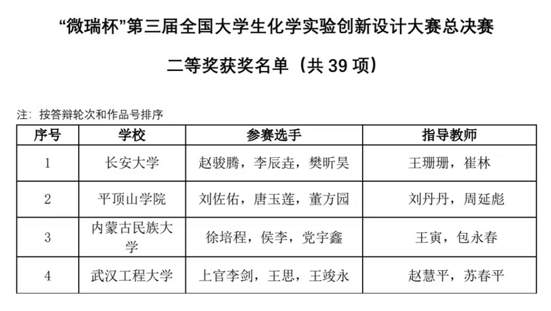 “超能分析队”凭借作品《基于固相萃取技术的老化沥青分离与分析》(指导老师:王珊珊、崔林),在西北分赛区中荣获一等奖,在全国总决赛中荣获二等奖,取得我校在该项赛事中目前最好成绩。