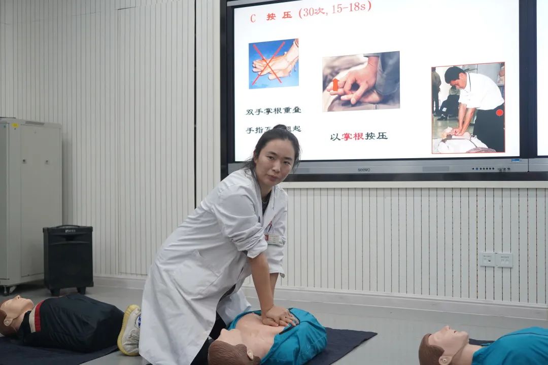 校医院医师齐梓伊从CPR(心肺复苏)和AED(自动体外心脏除颤器)切入,详细讲解了心脏骤停的医学概念、诱发原因,识别心脏骤停的关键要求以及CPR与AED的操作规程。针对非医护人员在遇到心脏骤停时应采取的重要步骤,强调了AED、胸外按压和人工呼吸三者的优先级以及对患者实施急救的注意事项,还进行了现场急救操作演练。齐梓伊鼓励同学们积极学习掌握使用AED的技能,若遇突发紧急情况时要敢于挺身而出,充分利用所学技能“救”在现场,努力做到“人人学急救、急救为人人”。