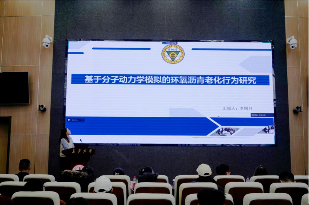 受邀参会的青年学者结合自身教育背景和研究方向,从城市道路交通网络拥堵、自动驾驶、黏土微观结构演化、沥青混合料微观损伤、环氧沥青老化行为等多个方面进行了专题学术报告。参会师生认真聆听学术报告,并就相关研究领域与青年学者展开深入交流,现场互动气氛热烈。