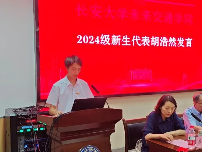 统考研究生代表胡浩然发言。他表达了对未来研究生生活的憧憬和期待,认为要将个人的理想追求融入到国家和民族的发展大局之中,用所学知识解决实际问题,为祖国和社会的进步贡献自己的智慧和力量,最后他引用“锲而舍之,朽木不折;锲而不舍,金石可镂”这句古语来勉励大家保持初心,坚持不懈。
