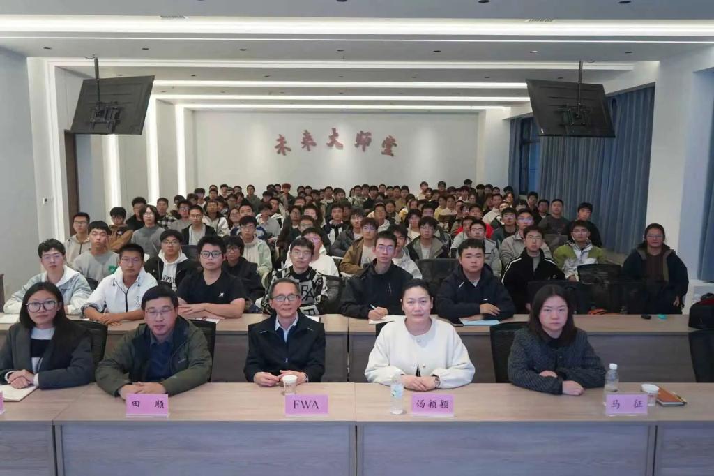 Fwa Tien Fang强调,作为未来交通学子,一定要面向未来、挑战未来、主导未来,要勇于探索未知领域,迎接新时代的挑战。在新时代,数字化、信息化与人工智能已成为至关重要的科研阵地,每一位学生要积极提高自身的创新能力和应变能力。随后,他通过讲述生成式大语言模型、人形机器人、无人机等新兴行业领军人物的事迹,呼吁同学们要在吃苦中磨练本领,在实践中增长才干,要用仔细谨慎的科研思维来实现天马行空的宏图伟业,在科技强国的壮阔之路上展现青春力量。