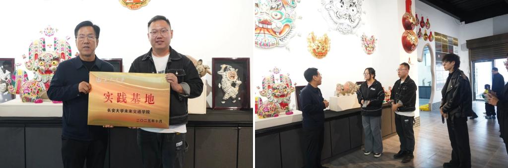 刘志兴代表未来交通学院与胡新明进行“实践基地”授牌仪式,促进了中华优秀传统文化融入高校心育和美育实践的双向联动。