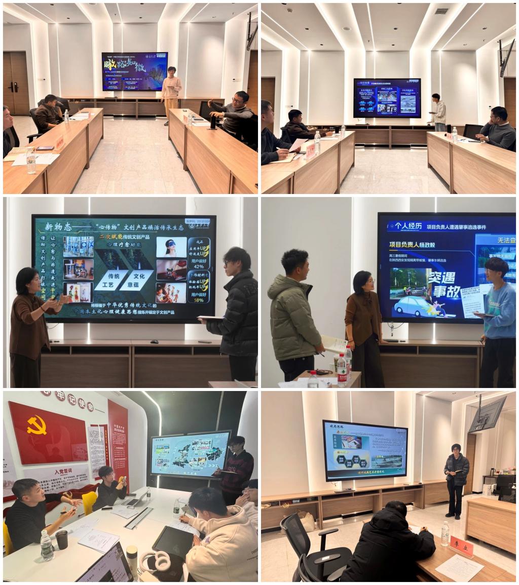 培训采取“模拟路演+精准指导”相结合的方式。每一次培训中,各参赛团队逐一进行模拟路演展示,重点围绕项目背景、社会价值、项目创新意义以及实践过程等维度展开介绍。评委教师结合具体实践案例,针对各团队项目开展一对一辅导,重点聚焦参赛队伍的答辩内容与表达技巧,PPT内容结构设计与衔接等关键问题提出建设性意见,明确指出当前各项目中存在的“内容落地不扎实”“逻辑关系不连贯”“论据合理性不充分”等共性问题,并给予具体改进指导,助力参赛团队提升现场路演的说服力与感染力。