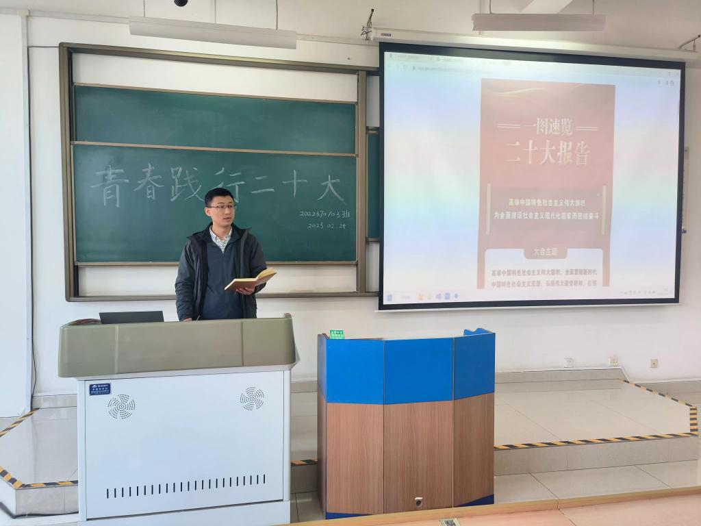 “凝心”深化思想政治教育。各年级辅导员、班主任、思政班主任深入一线,以“青春践行二十大”为主题,围绕“爱国、团结、奋斗、科学、互助”五个关键词进行宣讲和分享,教育引导学生全面深入学习领会党的二十大精神,在学院中掀起了学习贯彻党的二十大精神热潮,激励学生坚定信心决心,以饱满的热情、昂扬的精神投入到新学期的学习生活中。