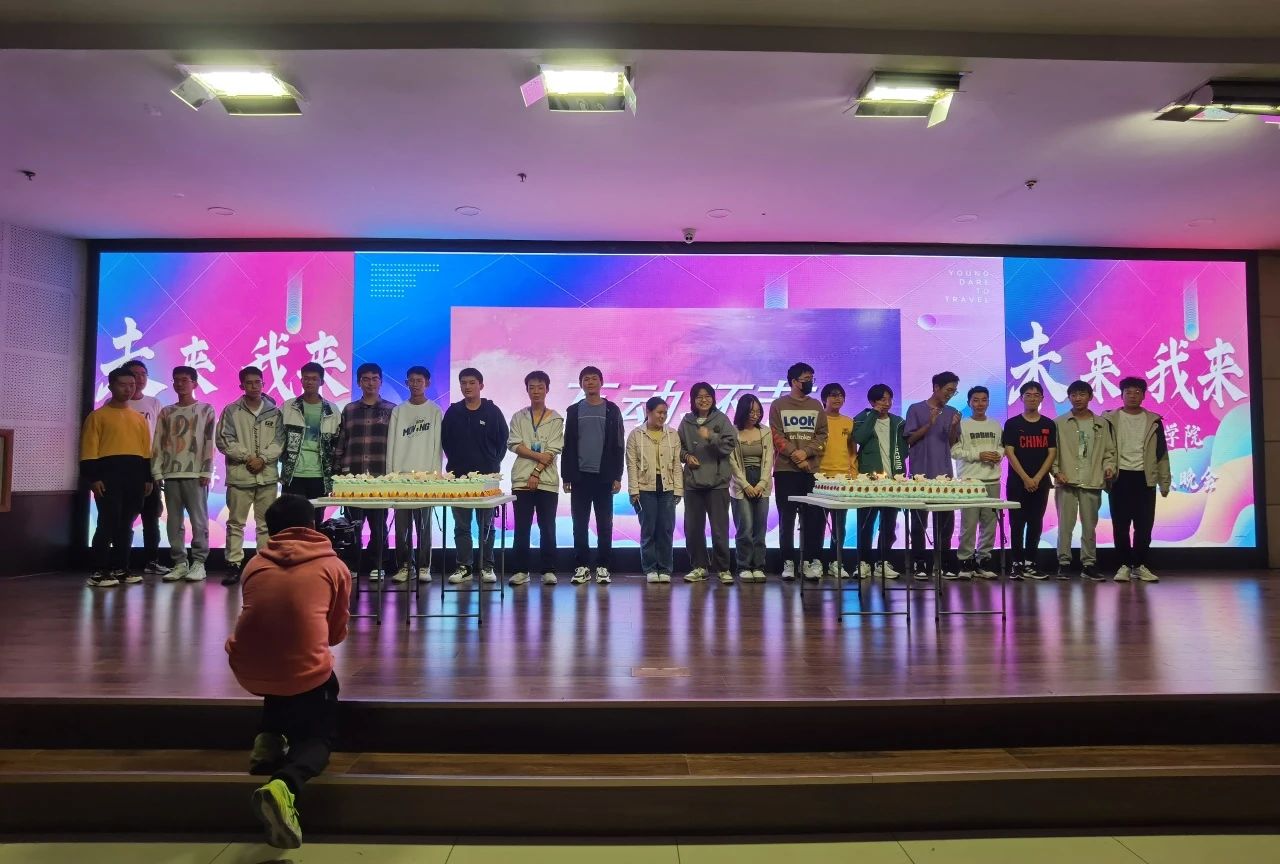 曾晓阳邀请10月过生日的21位同学来到台上,在合唱生日歌祝福“寿星”们健康快乐的同时,也为2022级、2023级的每一位同学带来了一份特别的礼物——写满全体241名同学名字的“生日蛋糕”,烛光闪闪,笑声阵阵,许下一个愿,一起吹蜡烛,一起切蛋糕,现场气氛其乐融融。