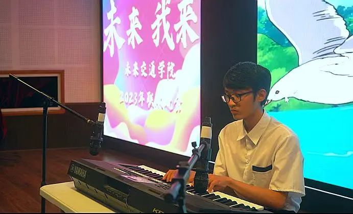 曾晓阳以《和你一样》送给每一位未来交通学子,愿每一位学子站立始此,初心不改,迎难而上,一往无前,在未来交通学院遇见最好的自己。