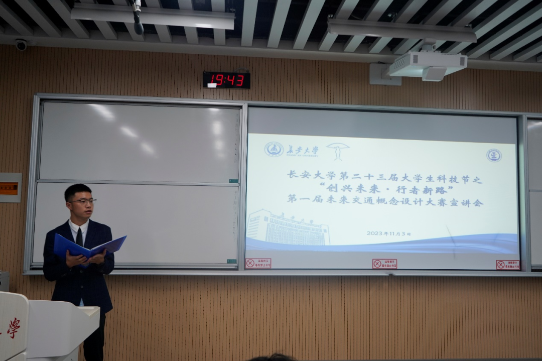 第一届未来交通概念设计大赛宣讲会。未来交通学院团委书记曾晓阳出席,未来交通学院大学生科技创新创业协会竞赛部负责人沈振海担任主讲,全体报名竞赛学生参加,会议由院科协志愿者杨可豪主持。