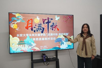时值中秋,李晨露以中国古典诗词打开同学们了解中秋节的门扉,活跃了现场气氛,更让大家对中华优秀传统文化有了更深的了解。李晨露介绍了烧箔团扇的文化意义,团扇因其形状团圆,常被用来象征合欢、团圆,古人常以团扇寄托思念之情,或表达对美好生活的向往。