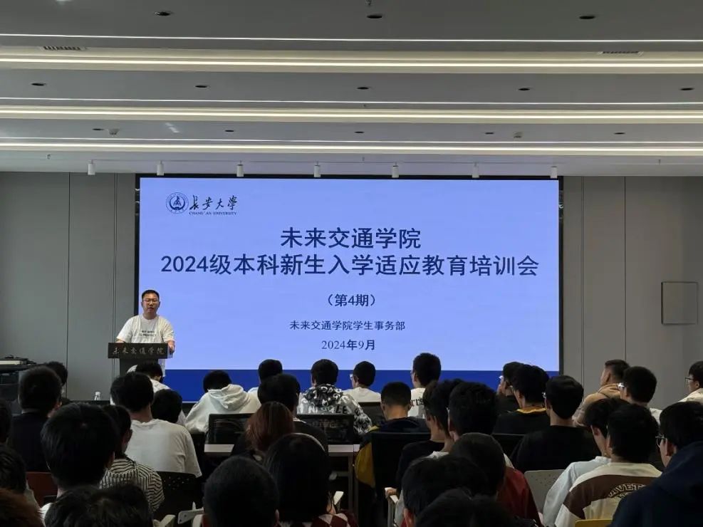 为帮助2024级本科新生顺利适应大学生活,9月30日中午,未来交通学院于弘毅大厦未来大师堂开展2024级本科新生入学适应教育(第4期)暨安全教育培训。学院2024级本科生辅导员刘志兴主讲,2024级全体本科新生参加。