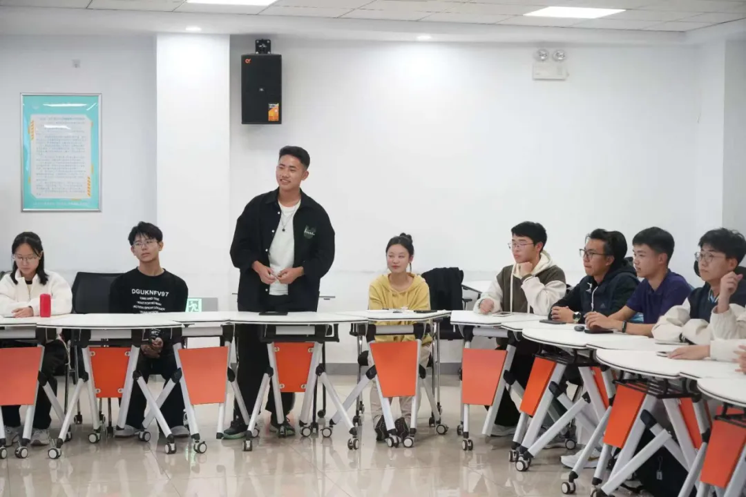 杨旭对学院特色课程培养方案及政策制度进行详细解读,期望学生培养高阶创新思维,鼓励学生积极组建科创团队,参与科创竞赛,提升科创能力。