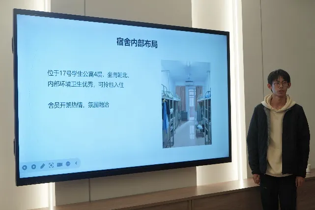 各参赛选手依次登台,精神饱满、热情洋溢地介绍各自宿舍的“装饰”过程和宿舍大家庭背后的故事。从PPT的制作到内容的呈现,无不展现出同学们对宿舍生活的热爱和对美好环境的追求。无论是男生还是女生,宿舍通过精美的装饰和独特的设计,结合创意性的“改造”,融入“家文化”理念,不仅注重美观性,还充分考虑了实用性与简洁环保型,使宿舍既具有艺术气息,又不失生活便利。他们利用有限的空间,发挥无限的创意,让宿舍焕然一新,充满了生机和活力。