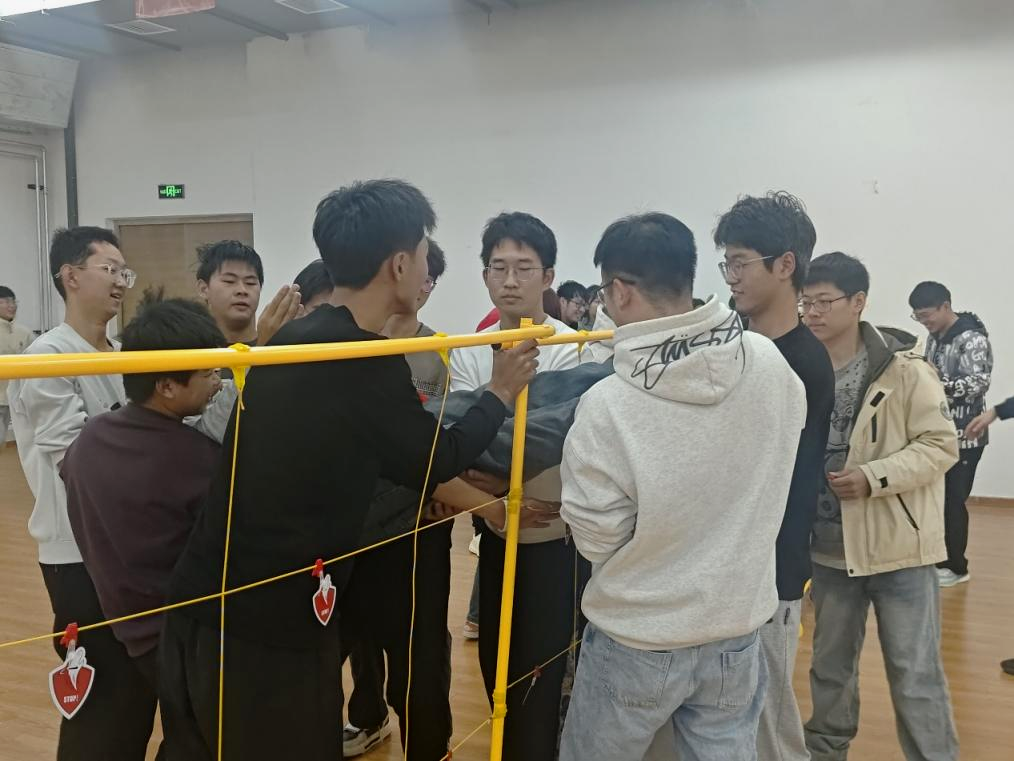 活动中,同学们按照分组相继进行了“手忙脚乱”“穿越电网”“故事分享”等丰富多彩的团体辅导活动,一系列创意十足、寓教于乐的游戏展现了同学们在团队竞技中的交流与互动。这些活动不仅增强了同学们的团队协作能力,更在相互协作中拉近了彼此距离,加深了各组织间情谊。