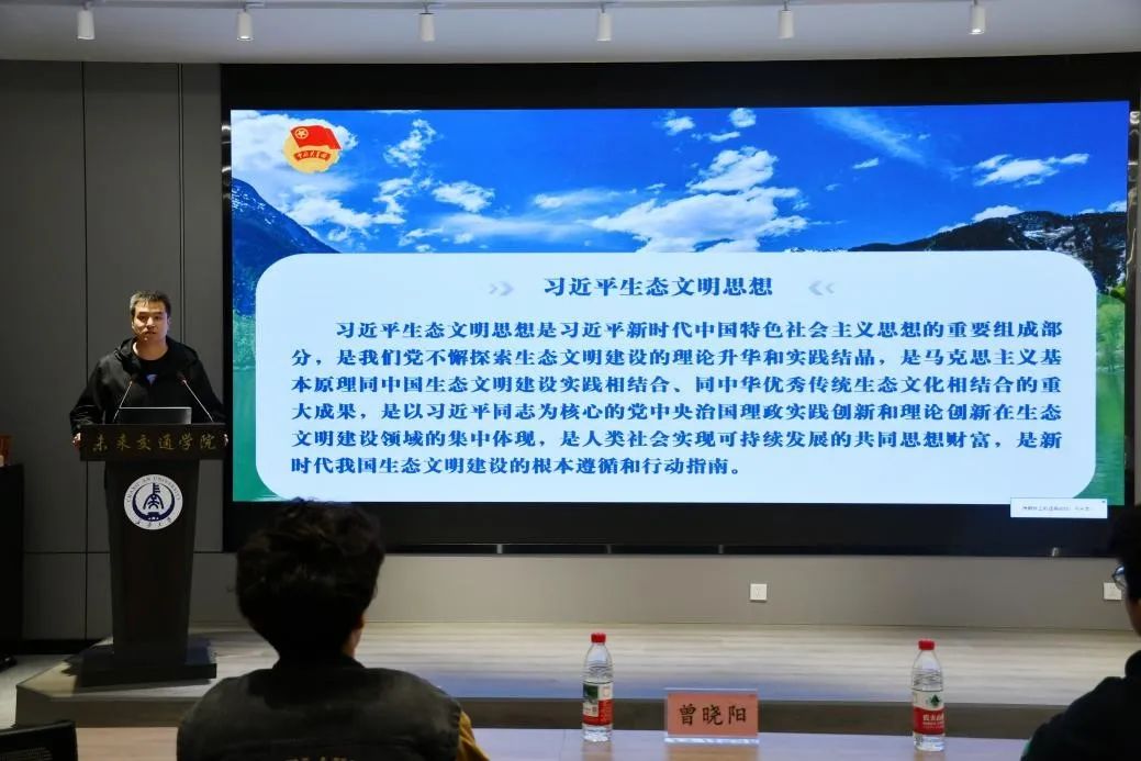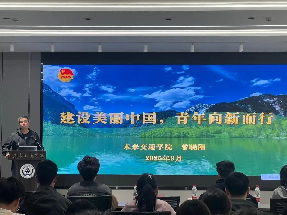 为引导青年学子深入学习习近平生态文明思想,在生态文明建设中发挥先锋模范作用,3月13日,未来交通学院组织开展“建设美丽中国,青年向新而行”主题教育团课。本次主题团课由院团委书记曾晓阳主讲,院第四期青马班全体成员、院团学组织和学生社团全体成员参会,会议由院青马班班长童子豪主持。