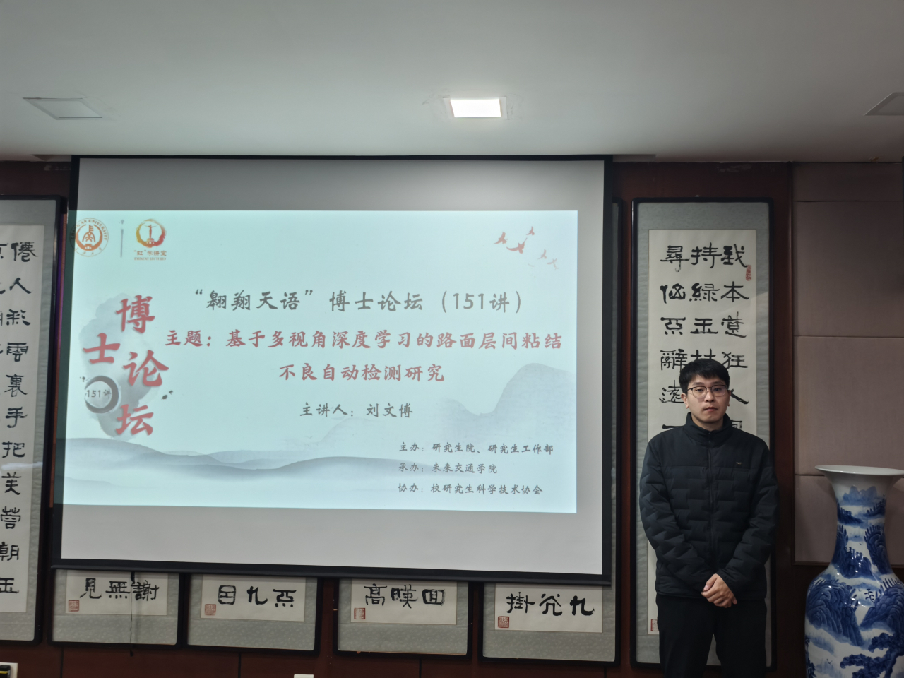 为进一步提升学院研究生科研素养,充分发挥先进典型示范引领作用,3月20日上午,由研究生院、研究生工作部主办,未来交通学院承办,院研究生科学技术协会协办的“翱翔天语”博士论坛第151讲暨“研途领航”系列论坛(第3讲)在南校区北院学术交流中心第五会议室举办。公路学院博士研究生刘文博受邀并作题为《基于多视角深度学习的路面层间粘结不良自动检测研究》的学术报告,学院30余名研究生参加本次论坛。