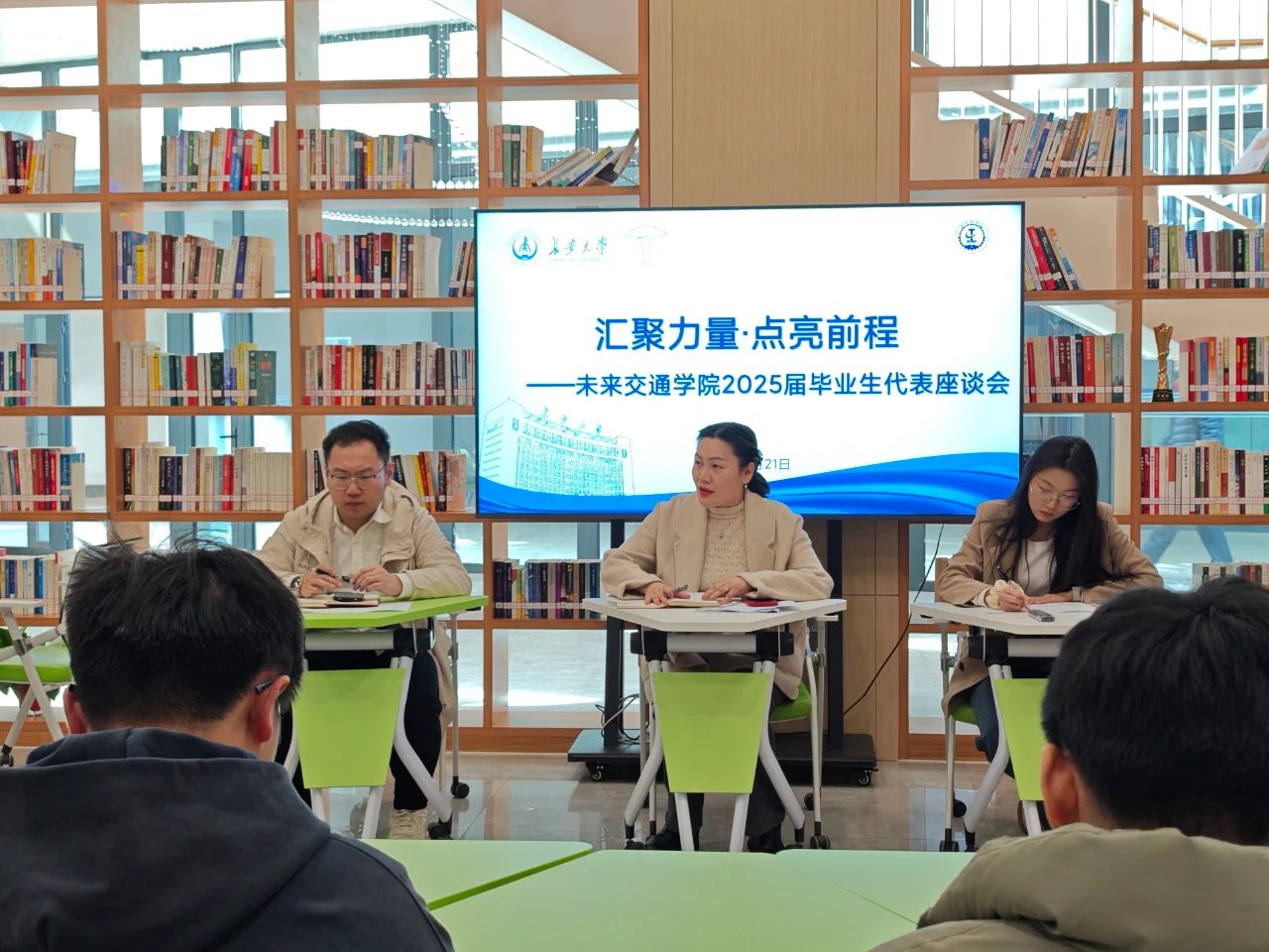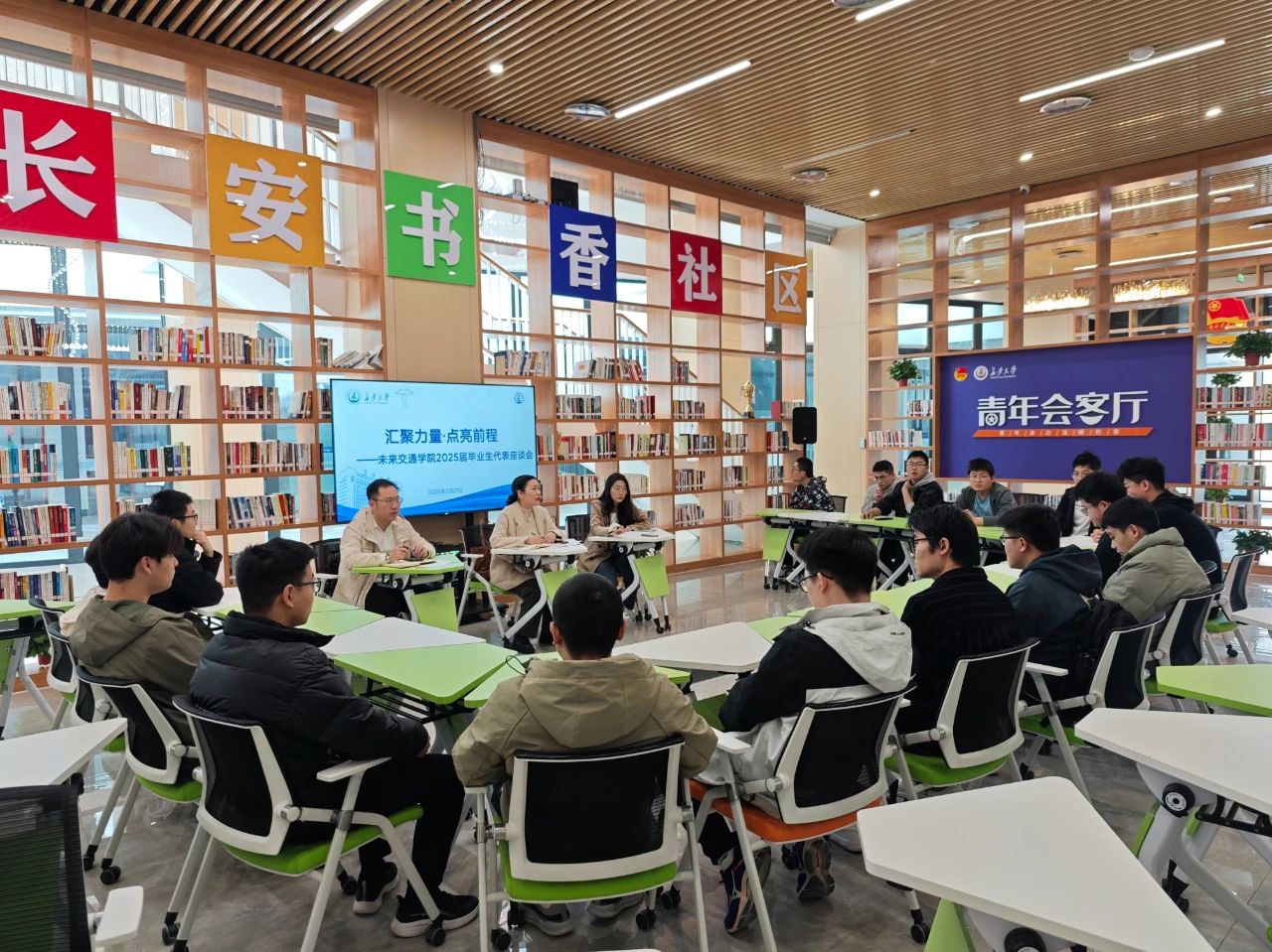 为深入了解2025届毕业生面临的挑战与需求,助力学生明确毕业方向、解决实际问题,更好地推进未落实去向毕业生就业工作,3月21日,未来交通学院在鸿渐园青年会客厅召开“汇聚力量·点亮前程”2025届毕业生代表座谈会。学院副院长汤颖颖、学生事务部主任刘志兴、毕业年级辅导员范荣欣出席会议,20余名毕业生代表参加。会议由范荣欣主持。