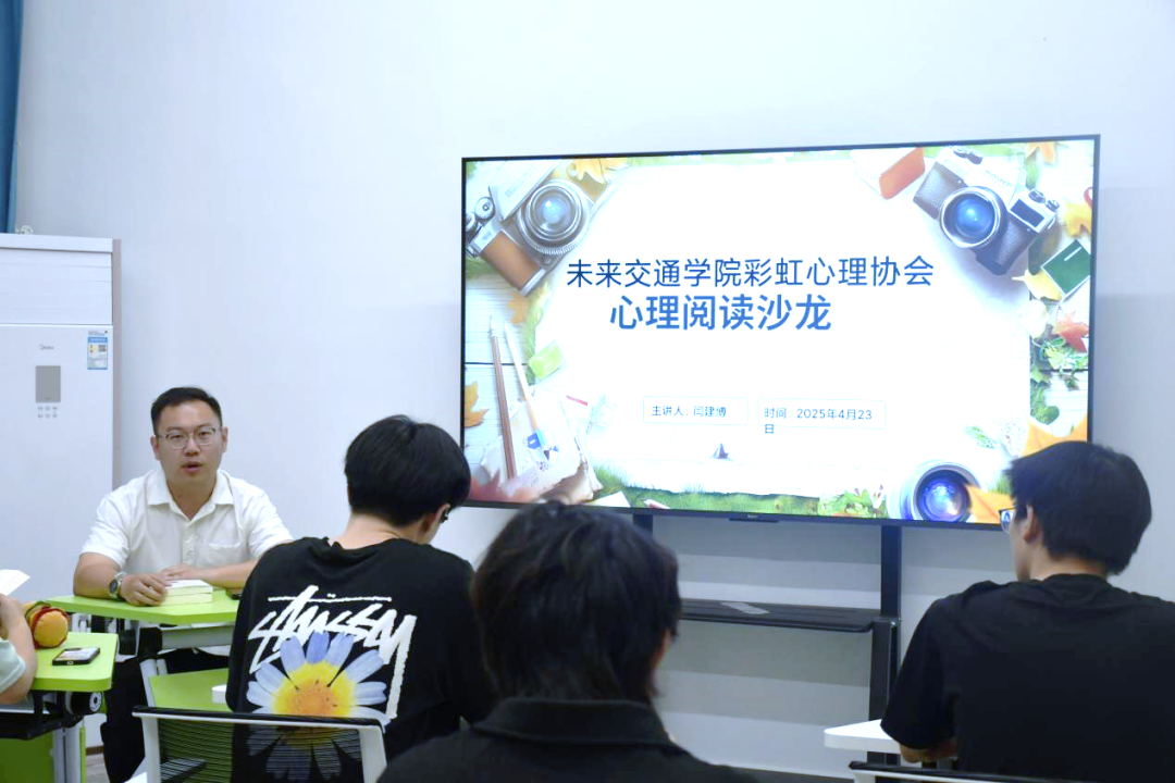 文学社指导教师、未来交通学院彩虹心理协会指导教师刘志兴参与活动并进行读书经验分享。他谈到读书可以启迪智慧、指导实践,希望同学们在大学期间好读书、读好书,在书籍中遇见天地、发现自我,在阅读中思考人生、认真生活,让读书成为习惯,不断挖掘自身可能性,在大学生活中激扬青春、开拓未来。