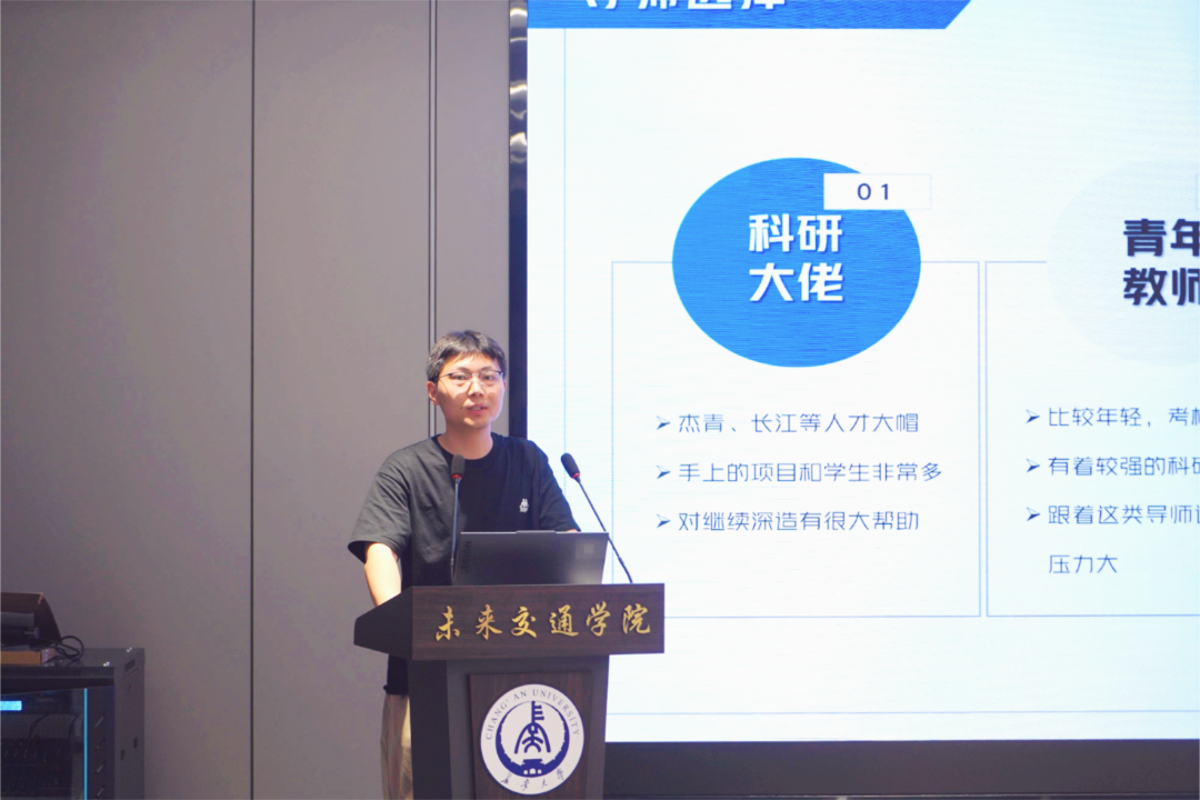 为帮助学院本科生进一步了解学院本研贯通“一体化”培养模式,提前了解研究生阶段的科研学习生活,4月28日晚,未来交通学院于弘毅大厦未来大师堂报告厅举办工科青年说科创沙龙(第四期)暨本研贯通经验交流分享会。此次活动邀请学院2024级研究生季书贤、纪裕伟、冯旭担任分享嘉宾,院团委书记曾晓阳出席活动,活动由院科协宣传联络部负责人付钰琪主持。