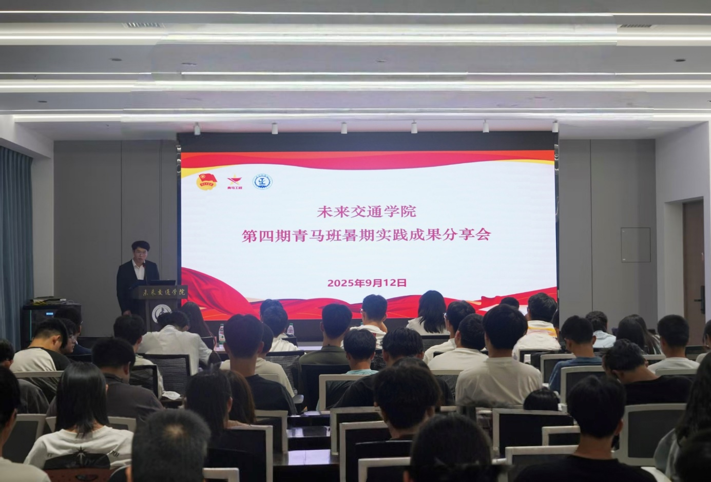 为深入学习贯彻习近平总书记关于青年工作的重要论述,强化青年责任担当与使命意识,引导青马学员切实把理论学习成果应用到社会实践中,未来交通学院第四期青马班于北校区弘毅大厦未来大师堂开展暑期实践成果分享会。往届优秀实践团队代表受邀担任分享嘉宾,院团委书记曾晓阳、院第四期青马班全体学员和2025级部分本科生参加活动,活动由院团学工作中心青马部负责人童子豪主持。