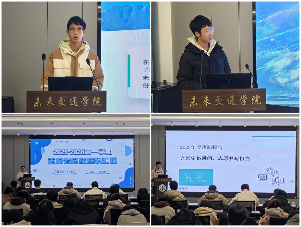 为系统总结学期工作成果,厘清宣传工作短板,进一步提升团队协作效能与内容创作质量,为后续工作谋好局、起好步,1月4日,未来交通学院青年传媒中心于弘毅大厦未来大师堂召开2025-2026学年第一学期述职报告会。院团委书记曾晓阳出席会议,院青媒全体成员参会,会议由院青媒运营部负责人皇甫帅帅主持。