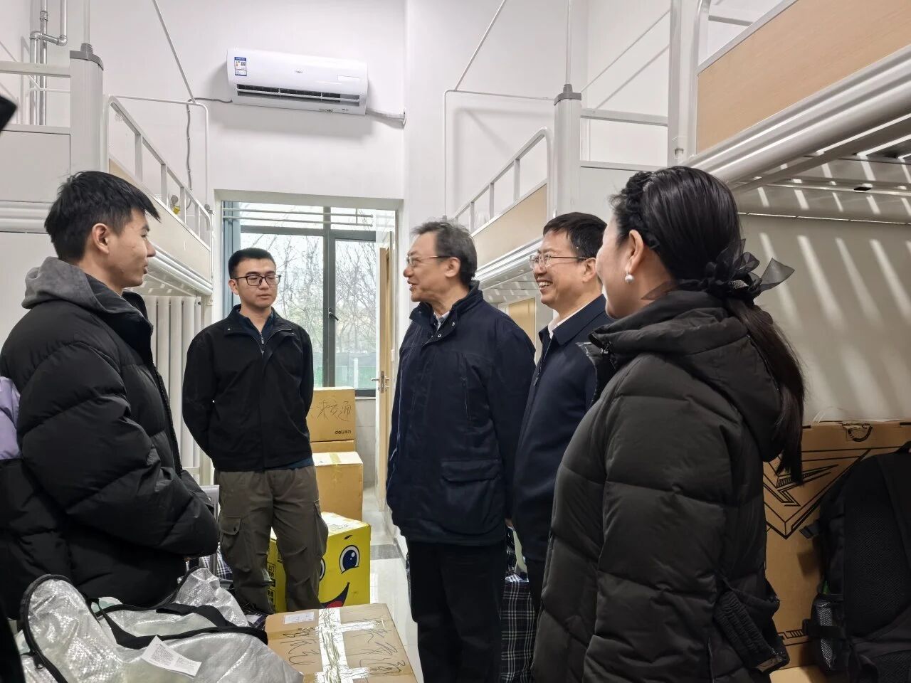 为第一时间掌握搬迁学生适应情况,搬迁工作结束后,学院领导与辅导员深入学生宿舍,实地查看新宿舍住宿条件、配套设施,积极协调解决学生在住宿、生活等方面的实际需求。汤颖颖勉励大家要尽快适应,充分依托北校区的资源优势,加强与导师、同学的协作联动,以更快速、更高效的面貌在学术融合与智能交通的科研赛道上聚成一团炽热的火焰。