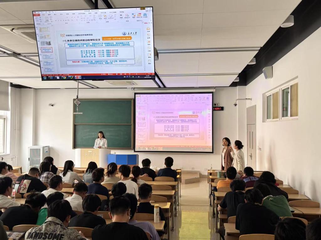 为了落细落好未来交通领域领军创新人才的办学目标,提升学院人才培养的国际化水平,未来交通学院于4月26日上午10时在渭水校区WH1101教室成功举办中外联合培养项目宣讲会。活动特邀国际合作交流处副处长周珍珍、合作办学项目管理科副科长张靖雯担任主讲嘉宾,指导学生国际化培养工作。学院副院长崔华教授主持活动,2024级研究生、2025级研究生(大四推免生)、2023级和2024级华为班学生现场参会。