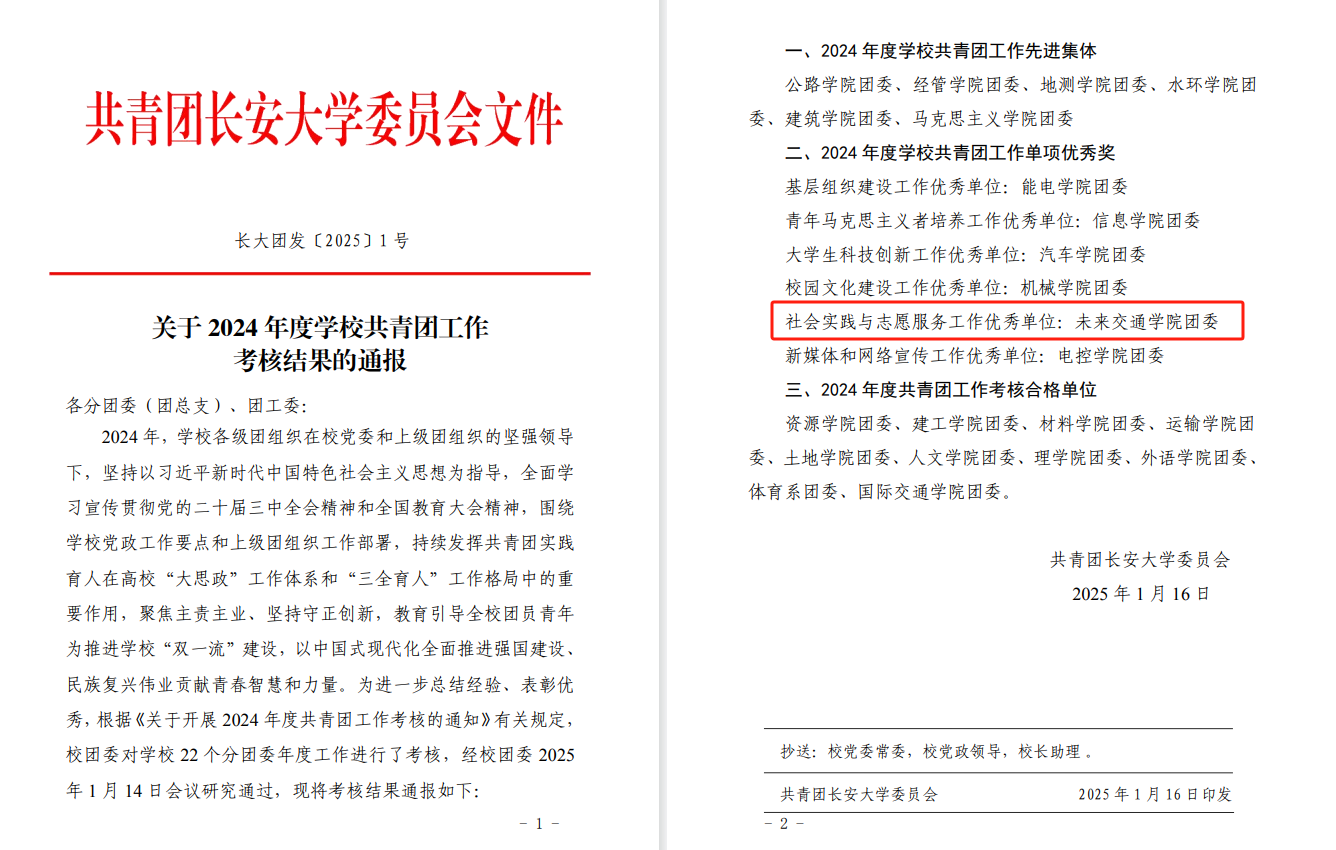 喜讯|未来交通学院团委荣获2024年度学校共青团工作单项优秀奖