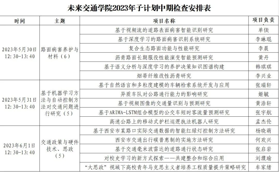为进一步加强学院对子计划项目的跟踪管理,提高项目完成质量,促进各队伍产出优秀成果,提高同学们的科创水平和能力,保障子计划项目后半周期顺利进行,未来交通学院将于近日举办“探索创新,展望未来”科创成长沙龙暨2023年子计划中期检查。 活动地点:北校区师生服务大厅三层第四会议室